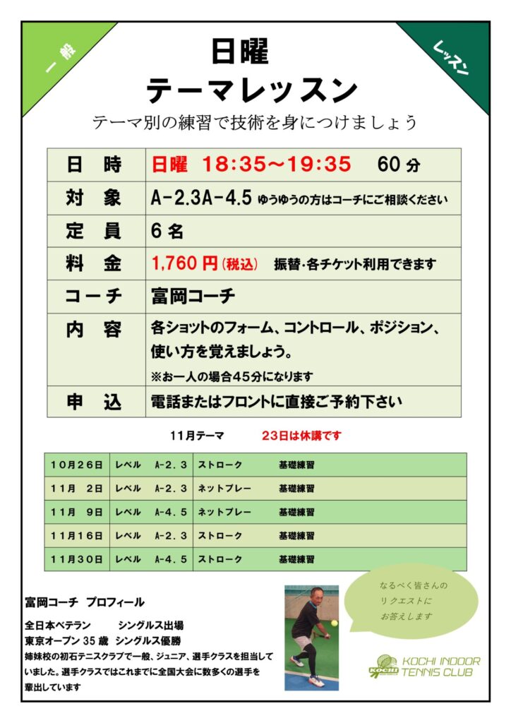日曜テーマ別レッスン11月期更新しました!! 2025年10月20日 最終更新日時 : 2025年10月20日 manager 日曜テーマ別レッスン11月期更新しました。苦手の克服、さらなる技術向上におすすめです!当日のご予約でも大丈夫ですので是非ご参加ください!