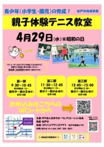 4/29(水祝)「親子体験テニス教室」お申込みはこちら!