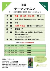 4/29(水祝)通常レッスンお休みです! 2026年4月29日 最終更新日時 : 2026年4月29日 manager 4/29(水祝)は「親子体験テニス教室」イベント開催のため通常レッスンはお休みとなります。よろしくお願いいたします。